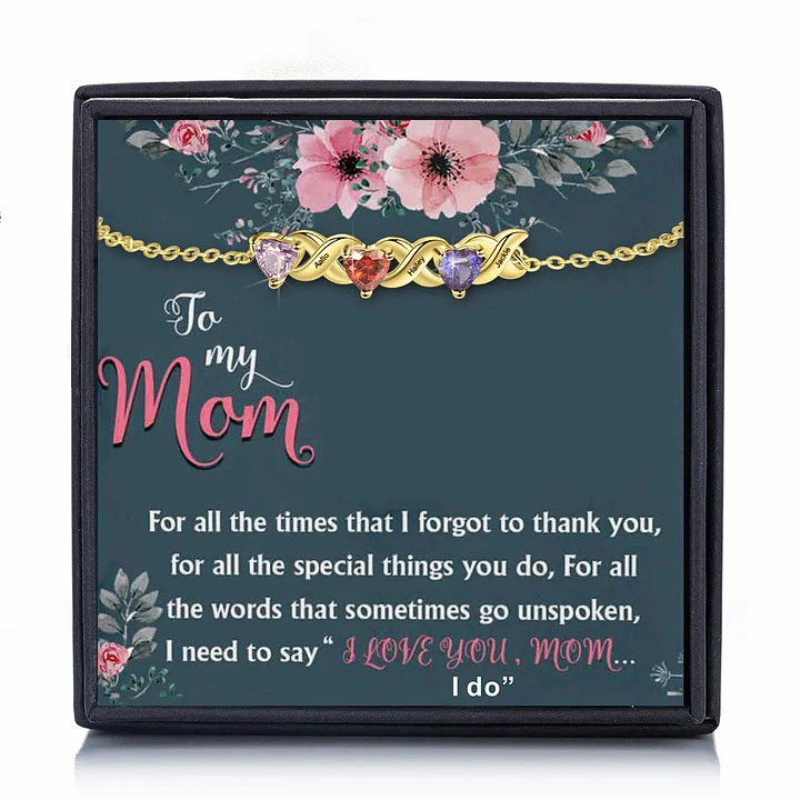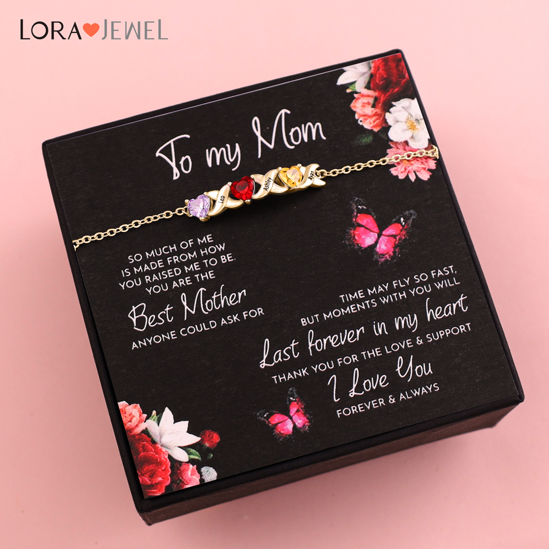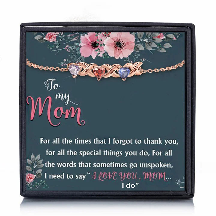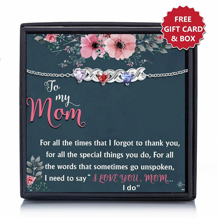 Family Custom Bracelet Heart Personalized with 3 Birthstones
