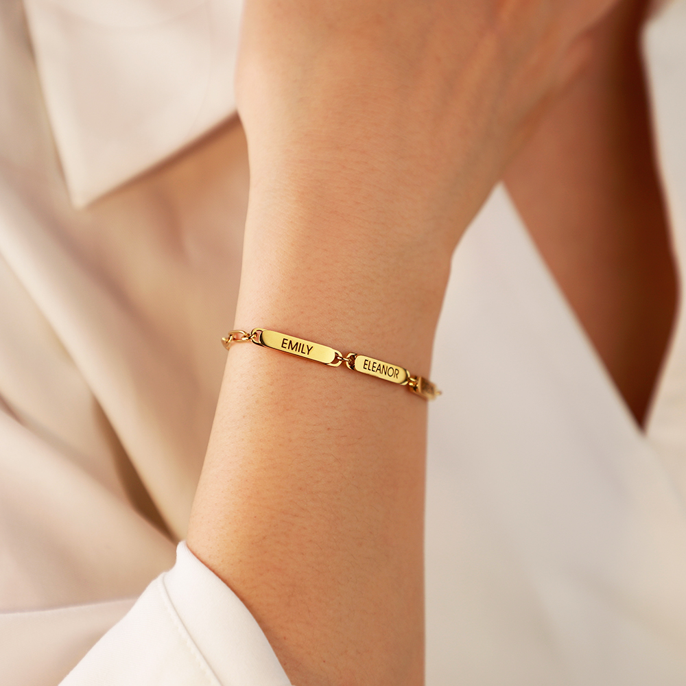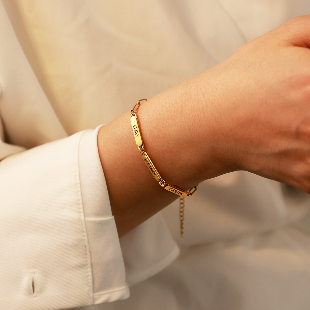 Our Personalized Chain Link Bracelet With Custom Charms makes a stunning statement. The meaning of the bracelet can be anything you choose. This beautiful piece features oversize links that support up to six  charms that can be customized with the initials or words of your choice. An extender chain makes it easy to get the fit and feel you prefer. This bracelet is handcrafted. It features: