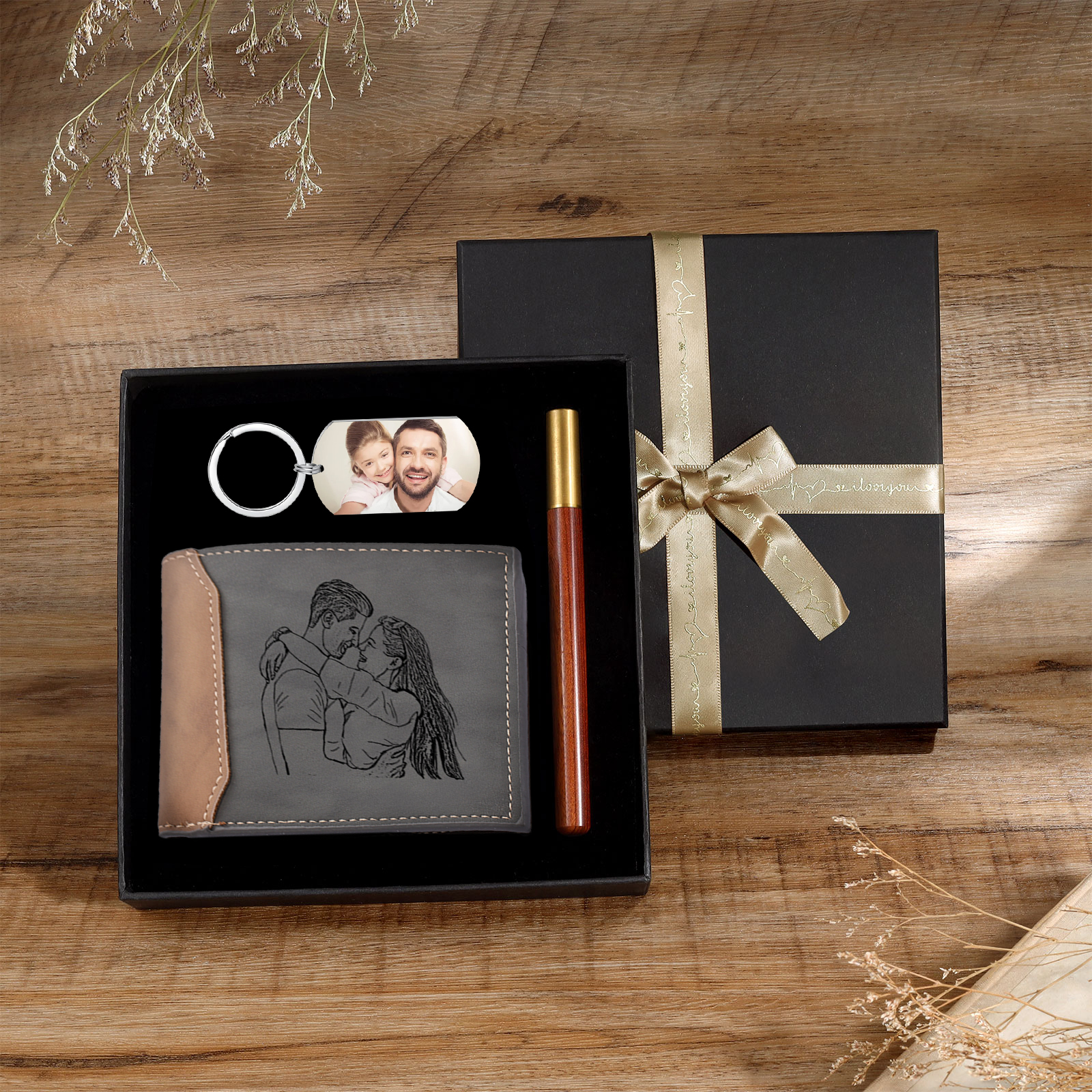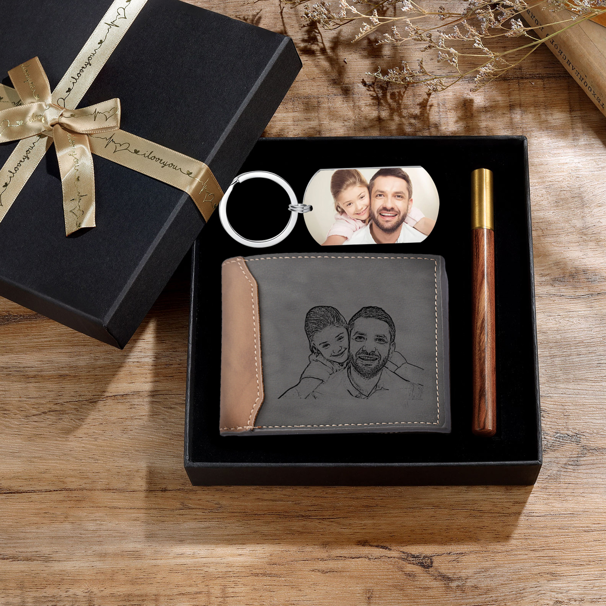 Make Dad's day with our special gift box set! Inside, you'll discover a stylish wallet, durable keychain, and sleek pen. 💼🔑🖊️